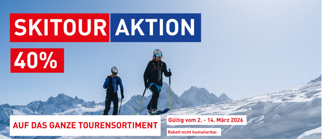 40% Skitourenausrüstung 27. Februar 2026AktuellesAnnamarie Gültig auf Lagerbestände, Bestellungen sind vom Rabatt ausgenommen. Nicht mit anderen Aktionen kumulierbar.